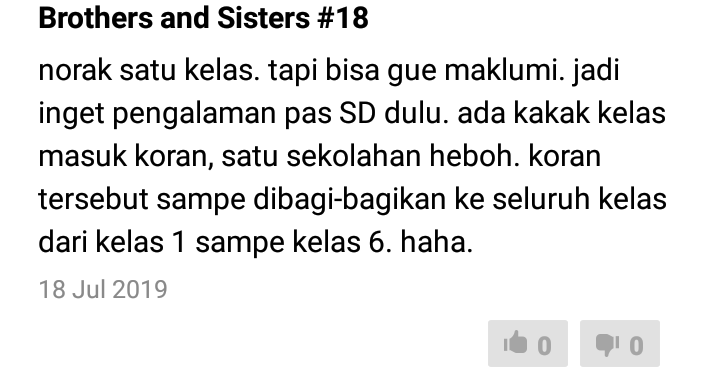 >> tentang dua remaja yang sekelas, yang mana saudara kandung si perempuan memusuhi saudara kandung si lelaki. Padahal kakak mereka berdua itu guru.